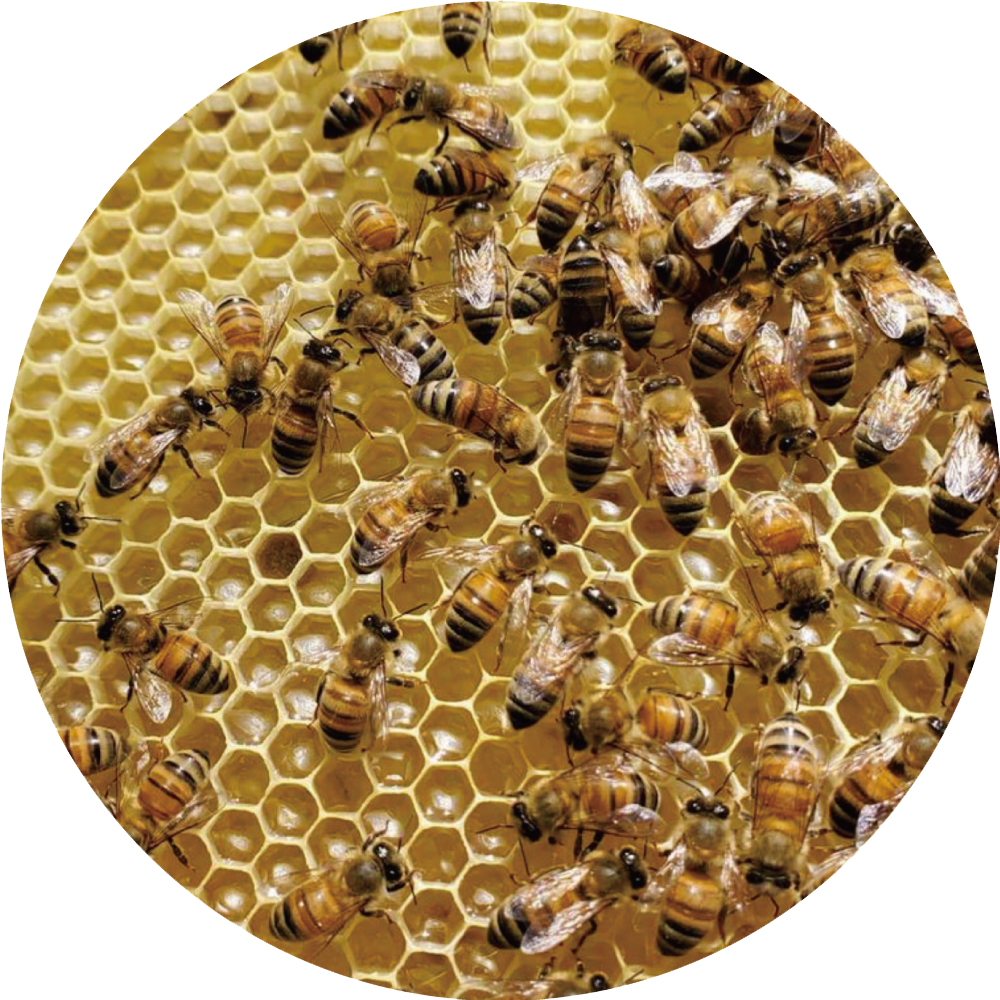 ミツバチは花の蜜を集めて作り出したはちみつを食べてみつろうを分泌し、巣を築いていきます。 一匹のミツバチが一生のうちに作るはちみつの量はティースプーン一杯分(約5g)ですが、そこから作られるみつろうの量はわずか10分の1(約0.5g)と言われており、とても貴重なものです。